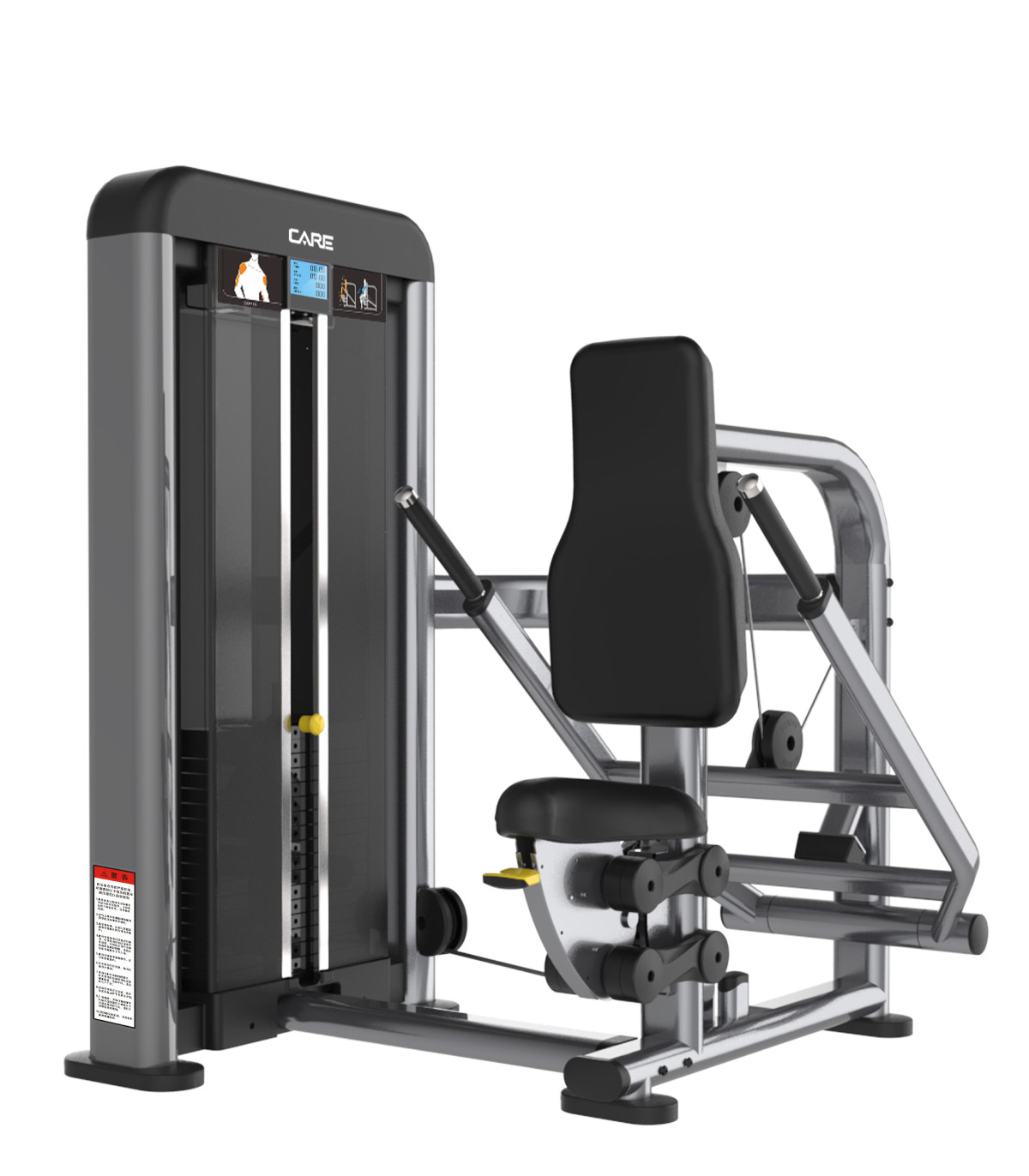 Richt u op uw triceps met verbluffende efficiëntie. Deze zittende tricepsmachine reproduceert de afstotingsbeweging van klassieke dips, maar met de controle en stabiliteit van een geleide belasting, waardoor het risico op schouderletsel wordt geëlimineerd. Dankzij de ergonomische handgrepen en de perfect verticale duwbaan zorgt het voor een radicale isolatie van de triceps, terwijl een ideale houding behouden blijft. Verzadig uw spiervezels, win aan dichtheid en smeed massieve armen met vloeiende bewegingen.