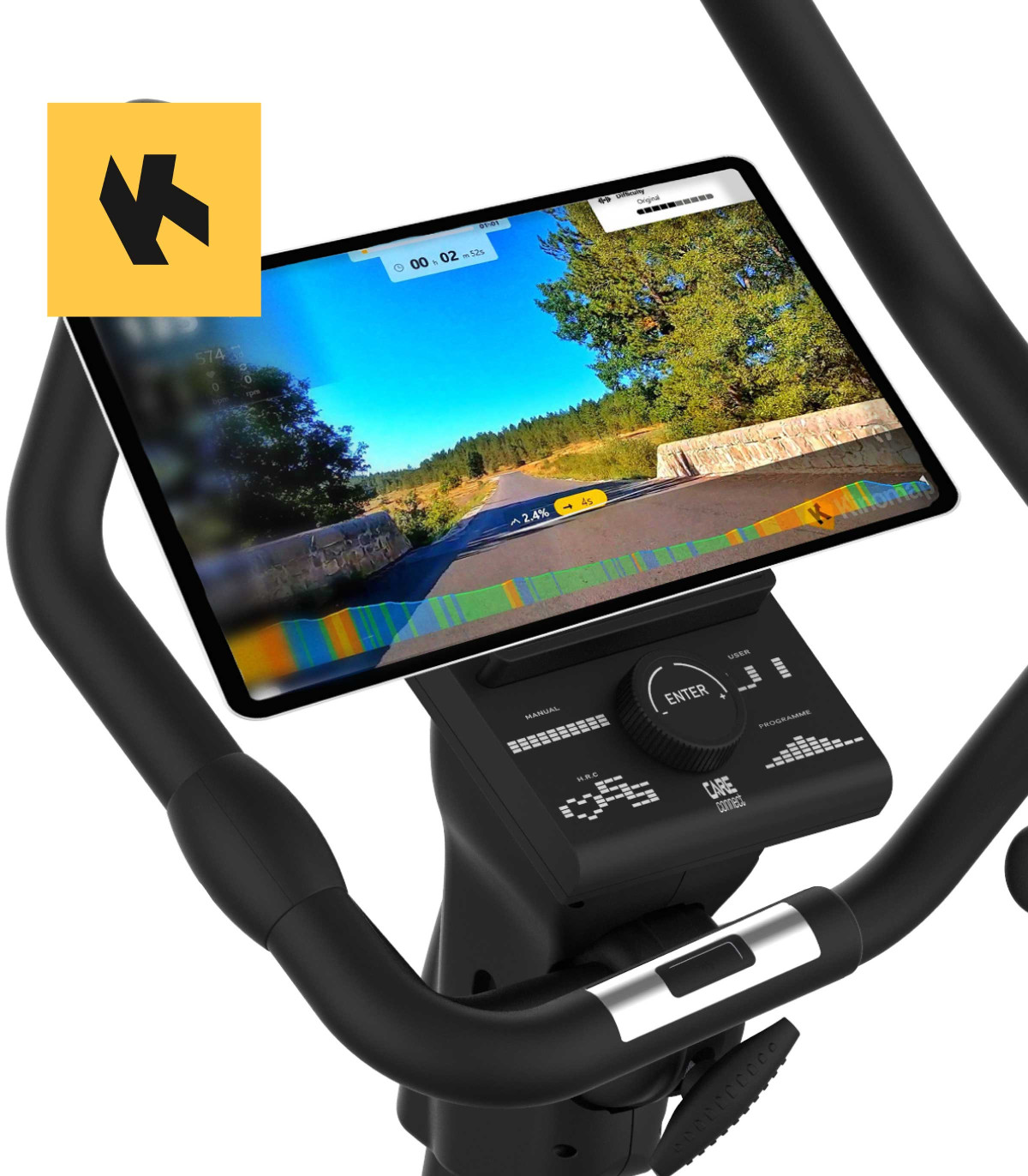 Kinomap-compatibiliteit voor meeslepende routes en motiverende training.