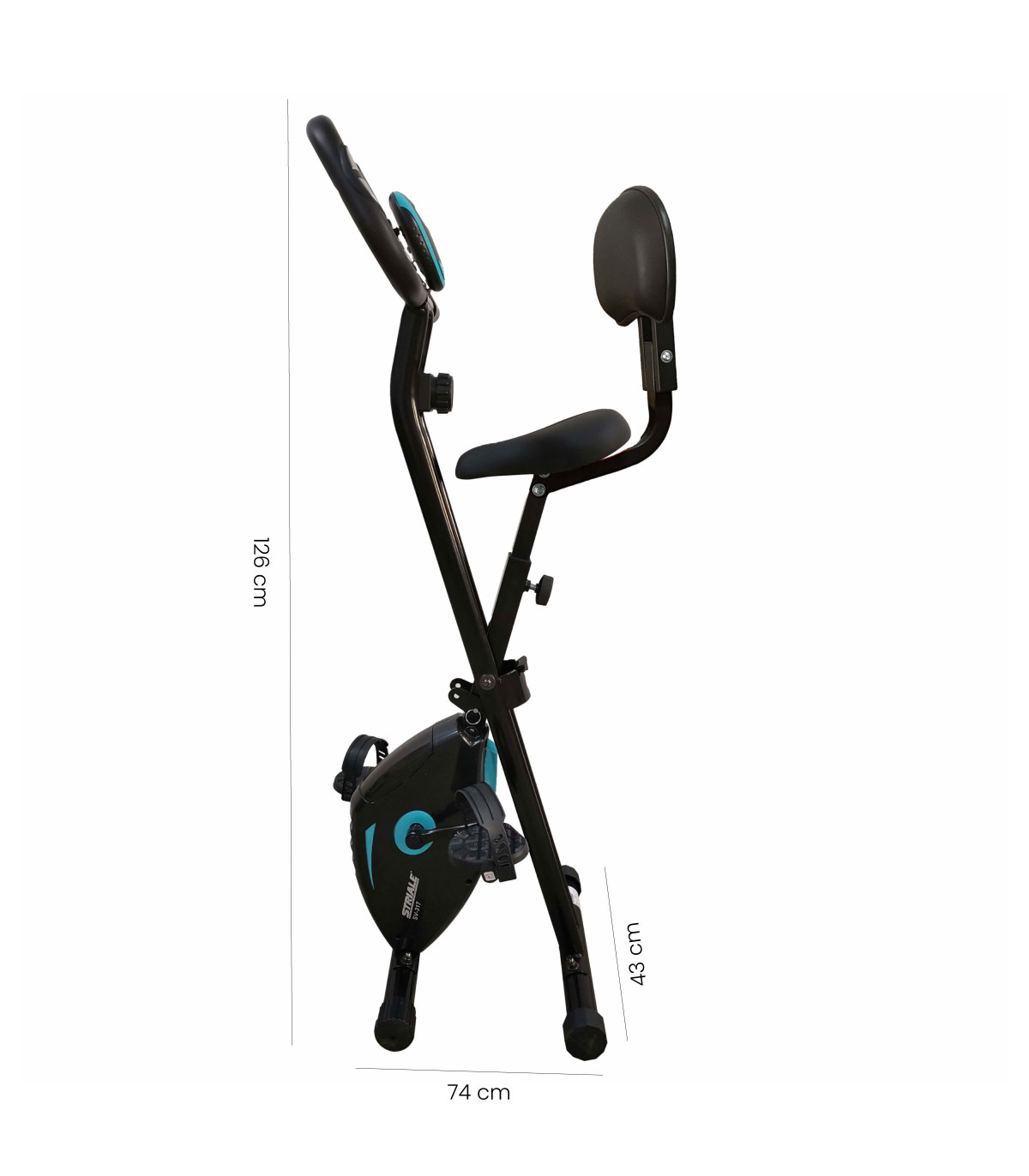 Deze vouwbare hometrainer is uitgerust met een handmatige magnetische weerstand met 8 niveaus en een computer met 6 functies. Het trappen verloopt soepel dankzij een vliegwiel van 4kg.