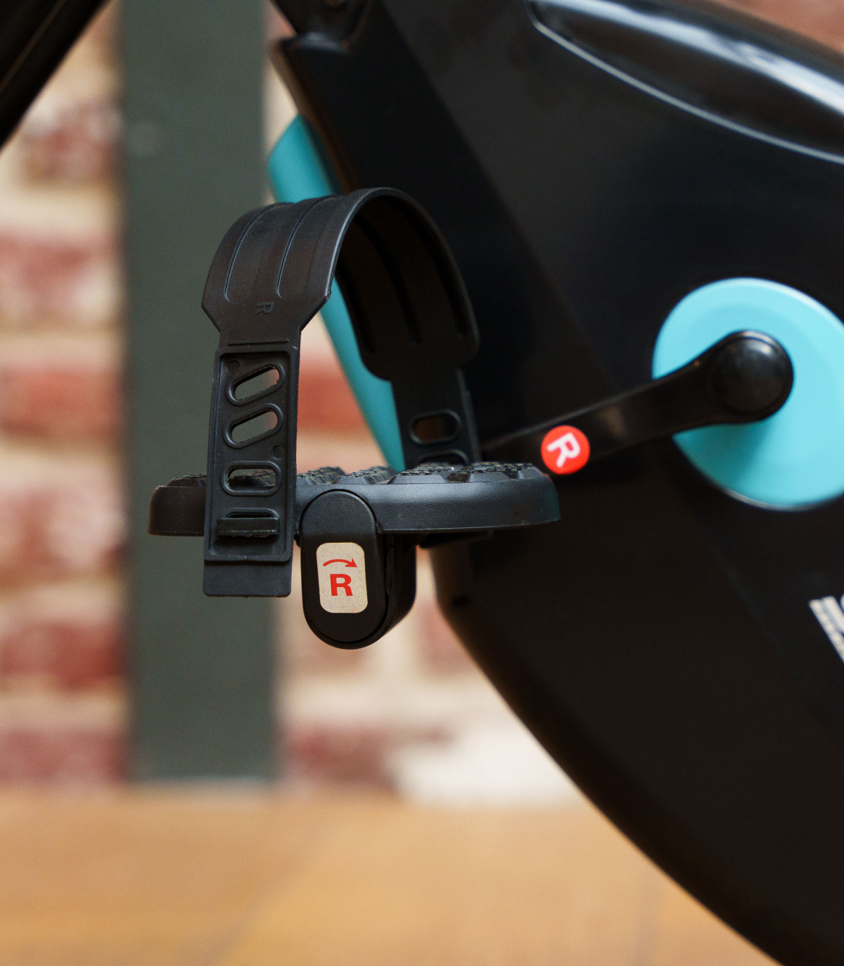 VliegwielHet vliegwiel van 4 kg zorgt voor een vloeiende trapbeweging zonder schokken, en wordt gecombineerd met verzwaarde pedalen met riempjes voor een goede voetsteun.