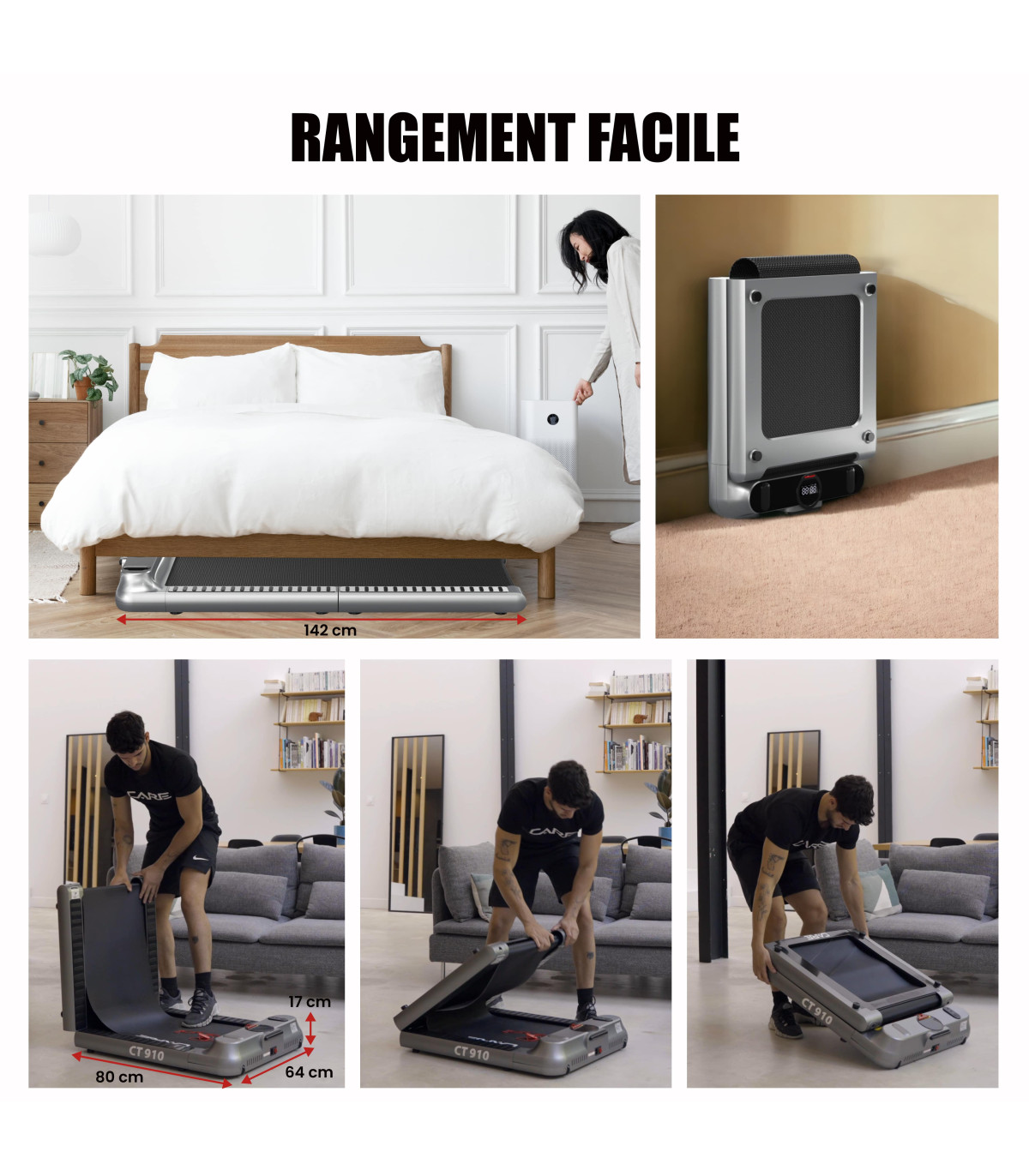 De CT-910 is een comfortabele en ergonomische loopband die zorgt voor een geschikte training en gemakkelijke opberging: