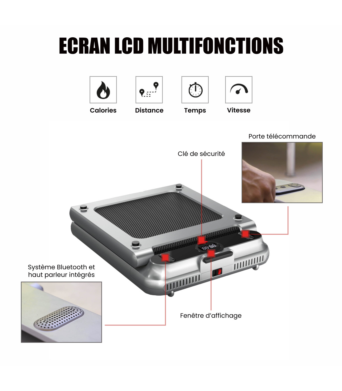 - Draadloze afstandsbediening om de loopband te bedienen