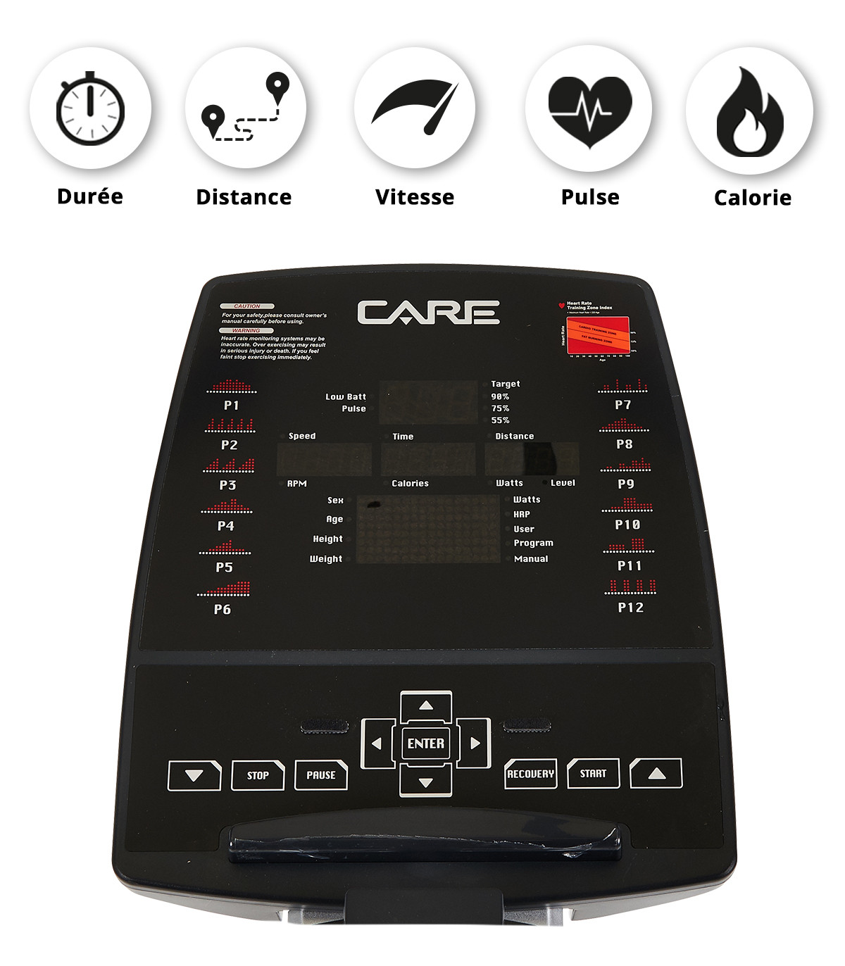Computer: de professionele Roadster fiets heeft 12 functies om uw prestaties te volgen en de kwaliteit van uw trainingen te verbeteren. De semi-ligfiets Roadster heeft de volgende functies:
