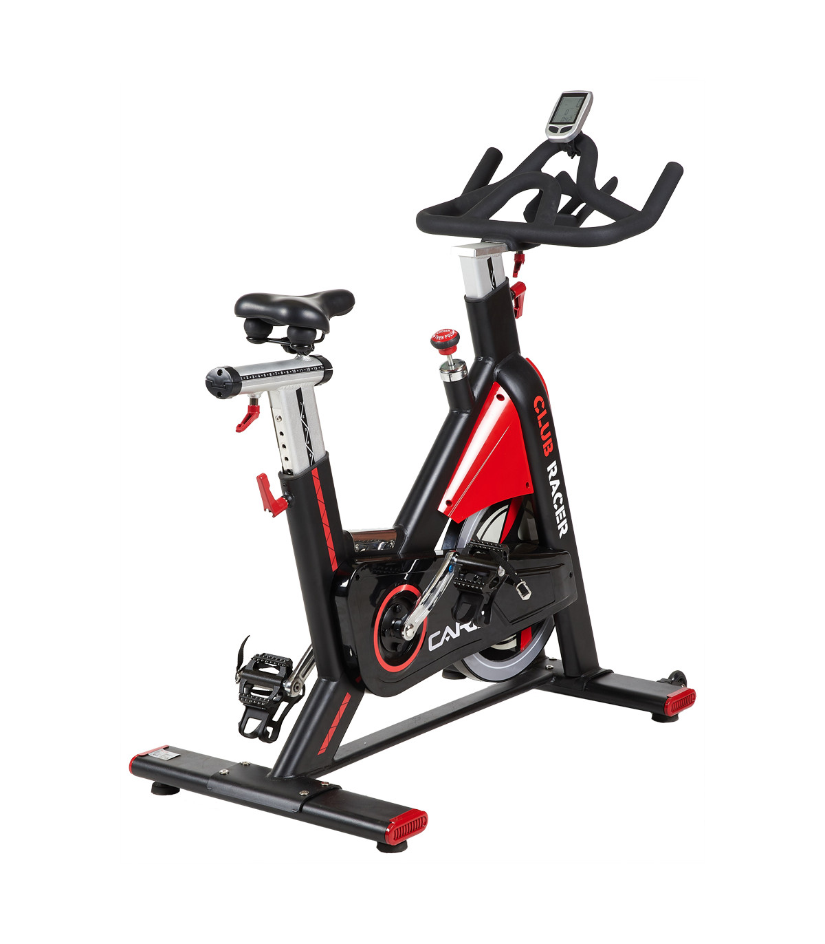Computer: De Club-racer spinningfiets is uitgerust met een draadloze en gecodeerde computer die 6 essentiële functies integreert voor het volgen van uw voortgang: