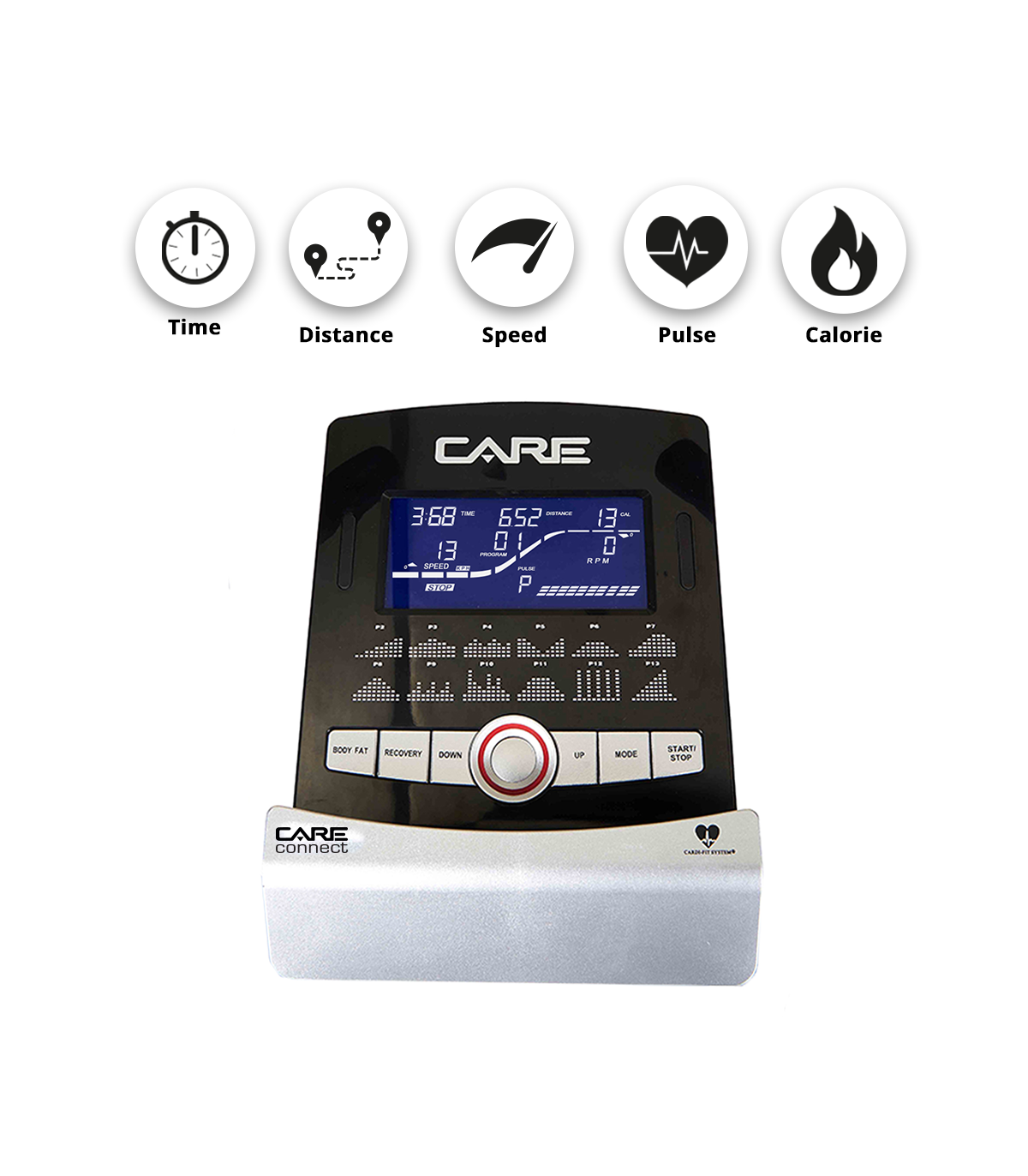 De CV-375 fiets heeft in zijn console 11 functies naast de vele programma's die binnen enkele seconden toegankelijk zijn, en de mogelijkheid om tot 4 gebruikers te registreren.